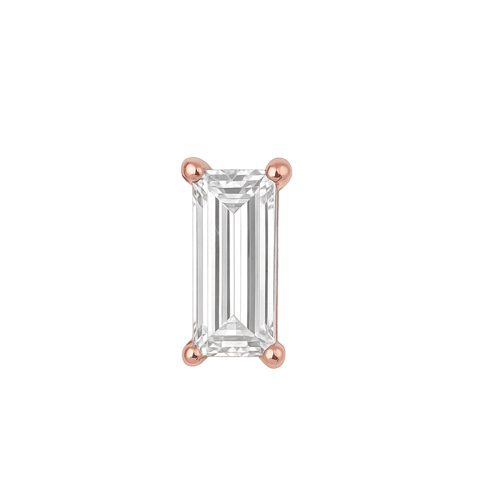 The BVLA Baguette Prong Diamond features a 3 × 2 mm VS1 clarity baguette-cut diamond set in a sleek prong frame. Its clean lines and polished gold setting create a refined, geometric accent that adds subtle brilliance to any piercing.