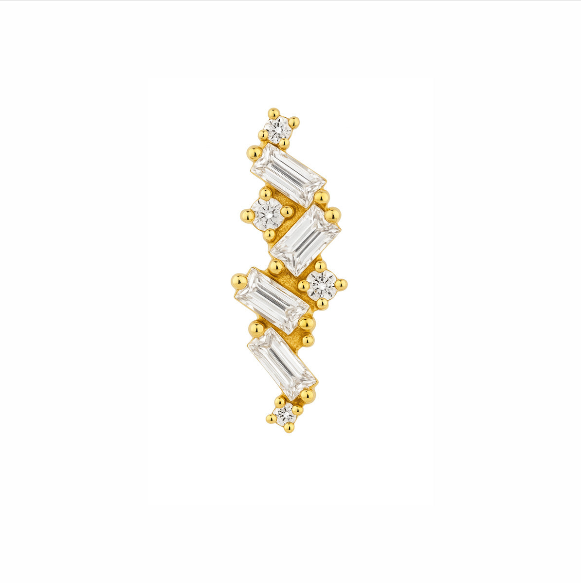 3x1.5mm White DIAMOND Baguette (4), 1mm White DIAMOND VS (2), 1.25mm White DIAMOND VS (1), 1.5mm White DIAMOND VS (1). This intricate mix of cuts creates a radiant sparkle with a refined asymmetry, perfect for a bold yet elegant statement.