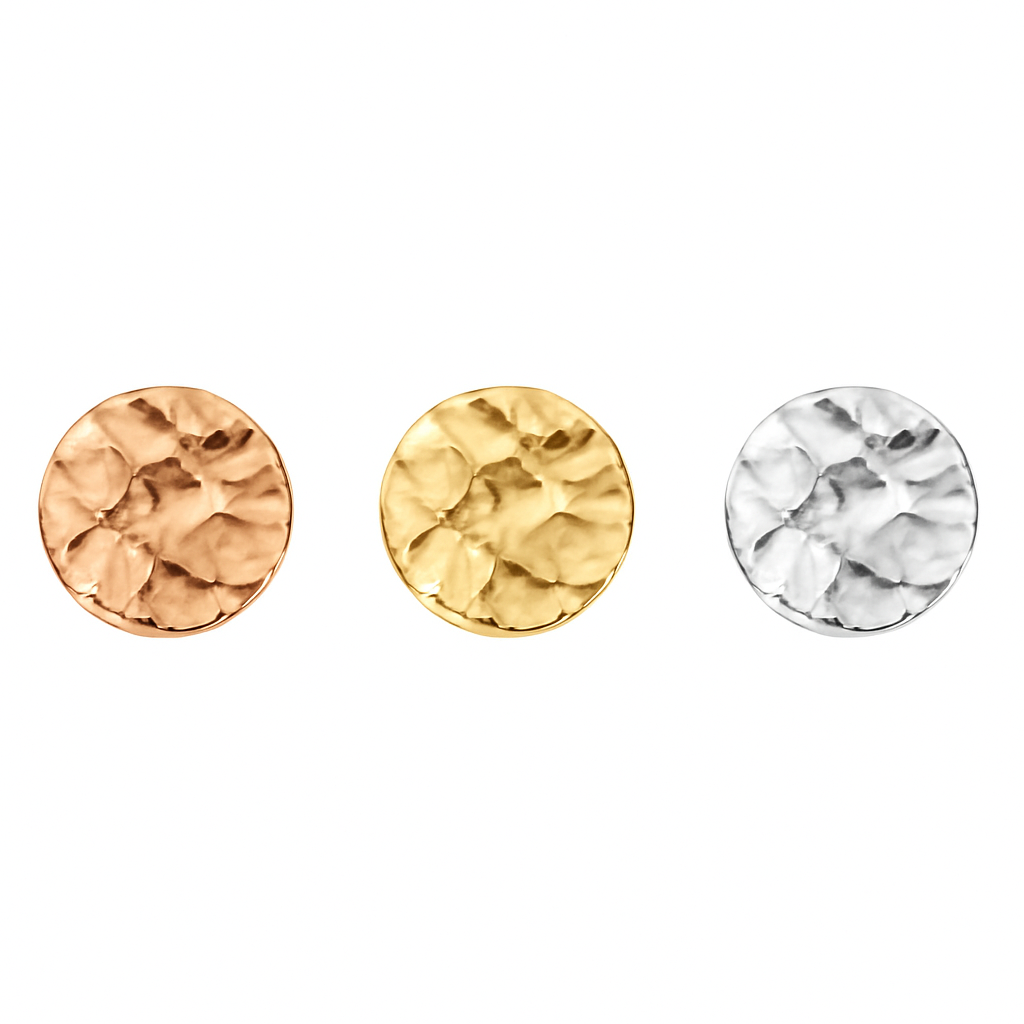 The BVLA Hammered Disc brings subtle texture to a timeless silhouette. Its hand-finished surface catches the light with a soft, organic shimmer, adding quiet dimension to any piercing. Understated yet distinctive, it’s a modern classic that pairs seamlessly with both minimal and curated ear styles.